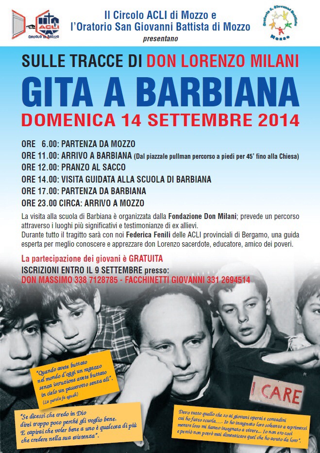 Mozzo/ACLI: Gita A Barbiana il 14 settembre. admin11 agosto 20147 agosto 2014blog post Navigazione articoli PrecedenteContinua Condividi:CondivisioneTweet Fai clic qui per stampare (Si apre in una nuova finestra) Stampa Fai clic per inviare un link a un amico via e-mail (Si apre in una nuova finestra) E-mail Mi piace Caricamento... Correlati