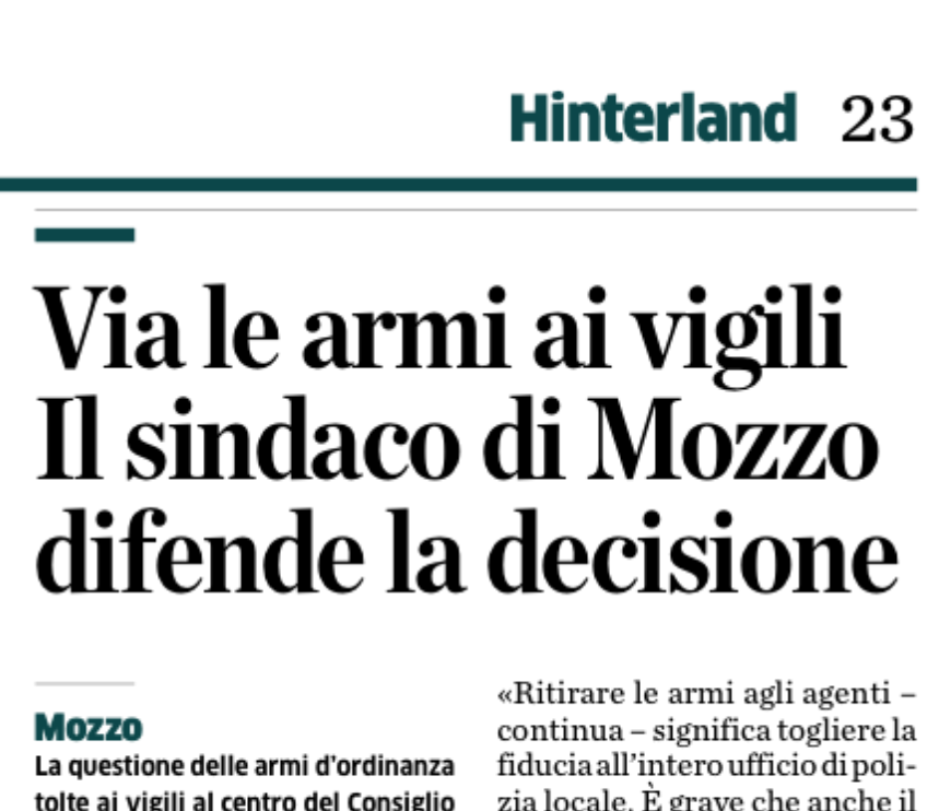Mozzo/Comune: ” Via le armi ai vigili. Il sindaco di Mozzo difende la decisione” Oggi su L’Eco di Bergamo in edicola. admin6 settembre 20146 settembre 2014blog post Navigazione articoli PrecedenteContinua . Condividi:CondivisioneTweet Fai clic qui per stampare (Si apre in una nuova finestra) Stampa Fai clic per inviare un link a un amico via e-mail (Si apre in una nuova finestra) E-mail Mi piace Caricamento... Correlati