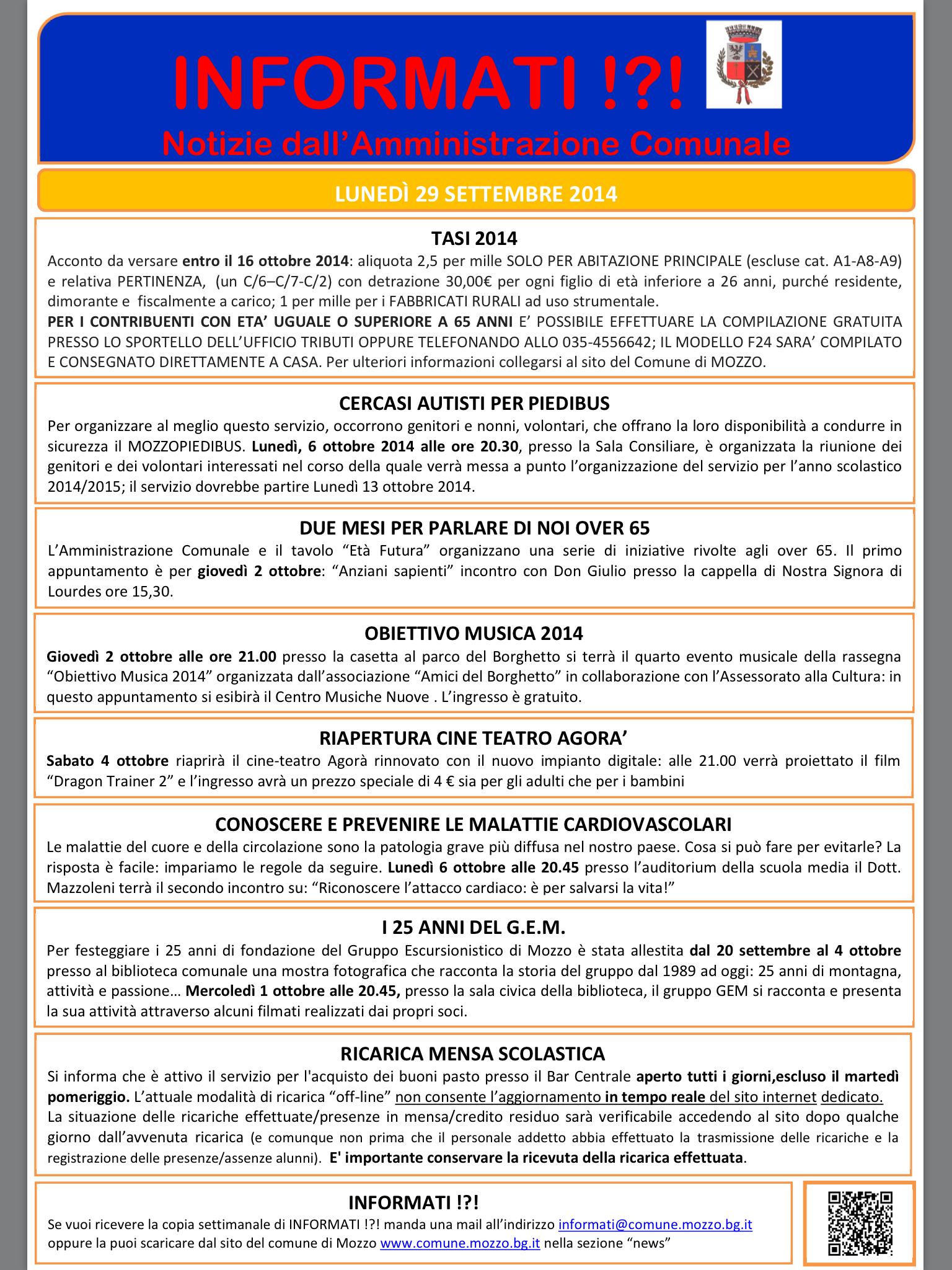 Mozzo/Comune: INFORMATI del 30 settembre 2014 admin30 settembre 201430 settembre 2014blog post Navigazione articoli PrecedenteContinua Condividi:CondivisioneTweet Fai clic qui per stampare (Si apre in una nuova finestra) Stampa Fai clic per inviare un link a un amico via e-mail (Si apre in una nuova finestra) E-mail Mi piace Caricamento... Correlati