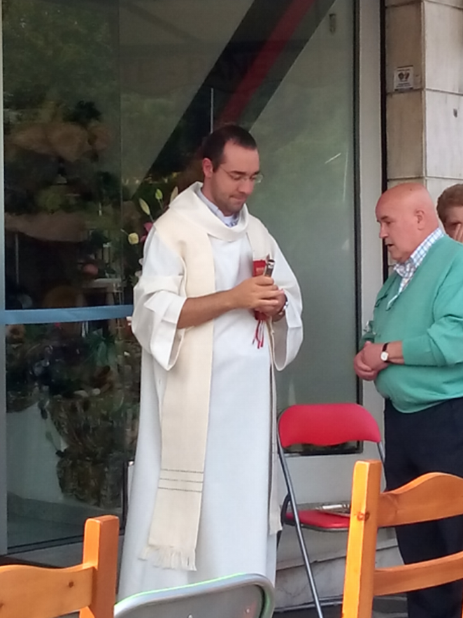 “Domenica pomeriggio don Massimo, alla presenza di molte persone ha benedetto l’inaugurazione con il tradizionale taglio del nastro della nuova gestione della macelleria- augurando ai due giovani Paolo & Manuel buon lavoro . E’ seguito un rinfresco all’interno del locale (foto Luigi Rota) ”