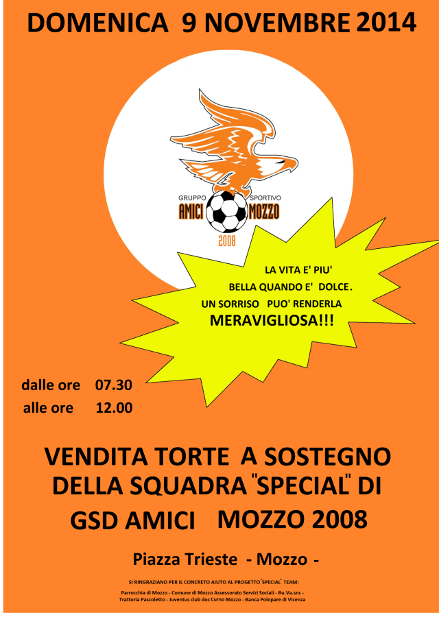 Mozzo/Calcio Le torte in piazza il 9 novembre. « AMICI MOZZO 2008 Football Club admin14 ottobre 2014blog post Navigazione articoli PrecedenteContinua Le torte in piazza il 9 novembre. « AMICI MOZZO 2008 Football Club. Condividi:CondivisioneTweet Fai clic qui per stampare (Si apre in una nuova finestra) Stampa Fai clic per inviare un link a un amico via e-mail (Si apre in una nuova finestra) E-mail Mi piace Caricamento... Correlati