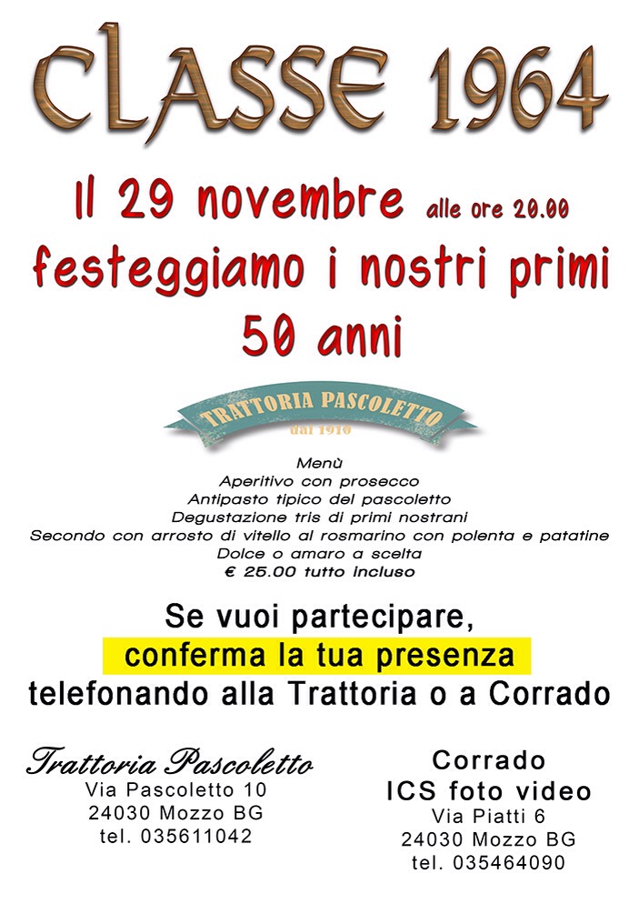 Mozzo/50enni: festa dei coscritti il 29 novembre. admin27 ottobre 201427 ottobre 2014blog post Navigazione articoli PrecedenteContinua Condividi:CondivisioneTweet Fai clic qui per stampare (Si apre in una nuova finestra) Stampa Fai clic per inviare un link a un amico via e-mail (Si apre in una nuova finestra) E-mail Mi piace Caricamento... Correlati