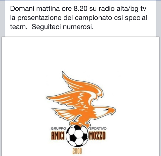 Mozzo/Calcio Amici Mozzo Special su Radio Alta | AMICI MOZZO 2008 Football Club admin27 ottobre 201428 ottobre 2014blog post Navigazione articoli PrecedenteContinua Amici Mozzo Special su Radio Alta | AMICI MOZZO 2008 Football Club. Condividi:CondivisioneTweet Stampa (Si apre in una nuova finestra) Stampa Invia un link a un amico via e-mail (Si apre in una nuova finestra) E-mail Mi piace Caricamento... Correlati