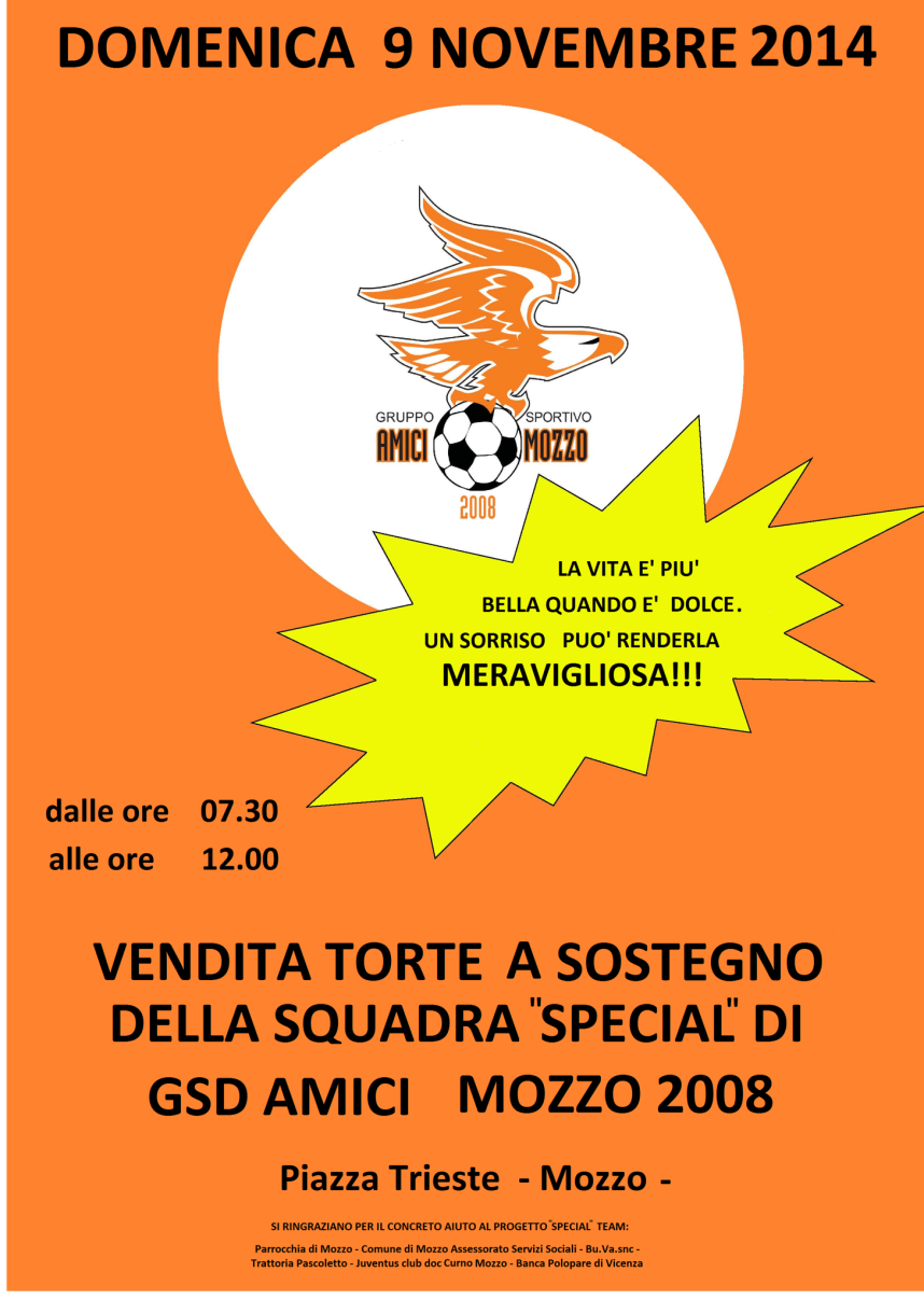 Mozzo/Calcio: torte in piazza il 9 novembre. admin7 novembre 20146 novembre 2014blog post Navigazione articoli PrecedenteContinua Condividi:CondivisioneTweet Fai clic qui per stampare (Si apre in una nuova finestra) Stampa Fai clic per inviare un link a un amico via e-mail (Si apre in una nuova finestra) E-mail Mi piace Caricamento... Correlati
