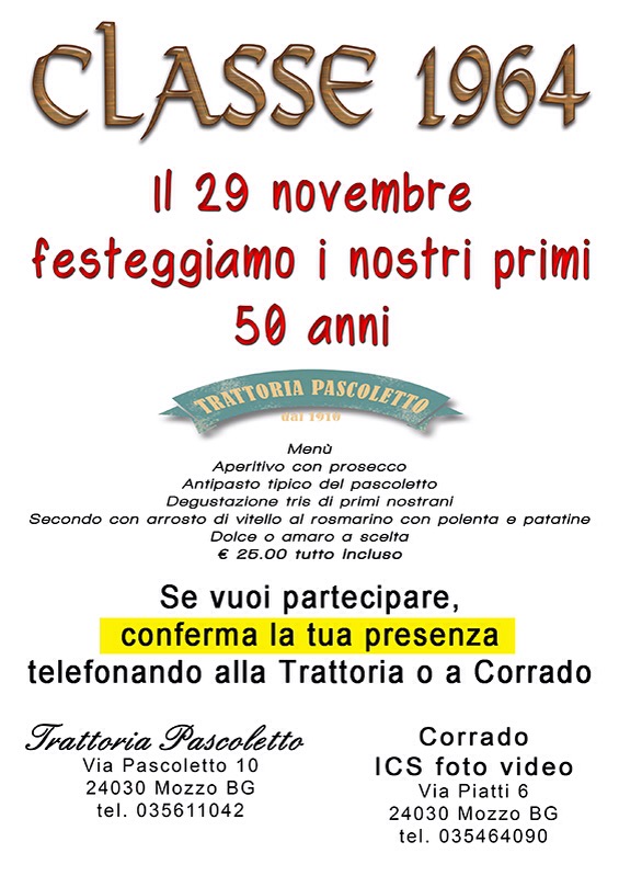 Mozzo/50enni: festa dei coscritti il 29 novembre. admin13 novembre 201411 novembre 2014blog post Navigazione articoli PrecedenteContinua Mozzo/50enni: festa dei coscritti il 29 novembre. Condividi:CondivisioneTweet Fai clic qui per stampare (Si apre in una nuova finestra) Stampa Fai clic per inviare un link a un amico via e-mail (Si apre in una nuova finestra) E-mail Mi piace Caricamento... Correlati
