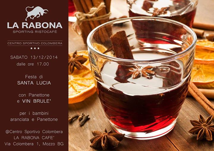 Mozzo: 13 dicembre Festa di Santa Lucia allo Sporting RistoCafe’ Rabona dalle 17 per grandi e piccini admin11 dicembre 2014blog post Navigazione articoli PrecedenteContinua SABATO 13/12/2014, dalle ore 17.00 Festa di SANTA LUCIA con Panettone e VIN BRULE’ (per i bambini aranciata e Panettone) Centro Sportivo Colombera LA RABONA CAFE’, Via Colombera 1, Mozzo BG Condividi:CondivisioneTweet Stampa (Si apre in una nuova finestra) Stampa Invia un link a un amico via e-mail (Si apre in una nuova finestra) E-mail Mi piace Caricamento... Correlati