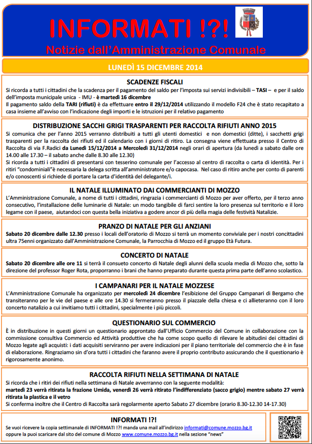 Mozzo/Comune: Informati del 15 dicembre 2014 admin16 dicembre 2014blog post Navigazione articoli PrecedenteContinua Condividi:CondivisioneTweet Fai clic qui per stampare (Si apre in una nuova finestra) Stampa Fai clic per inviare un link a un amico via e-mail (Si apre in una nuova finestra) E-mail Mi piace Caricamento... Correlati