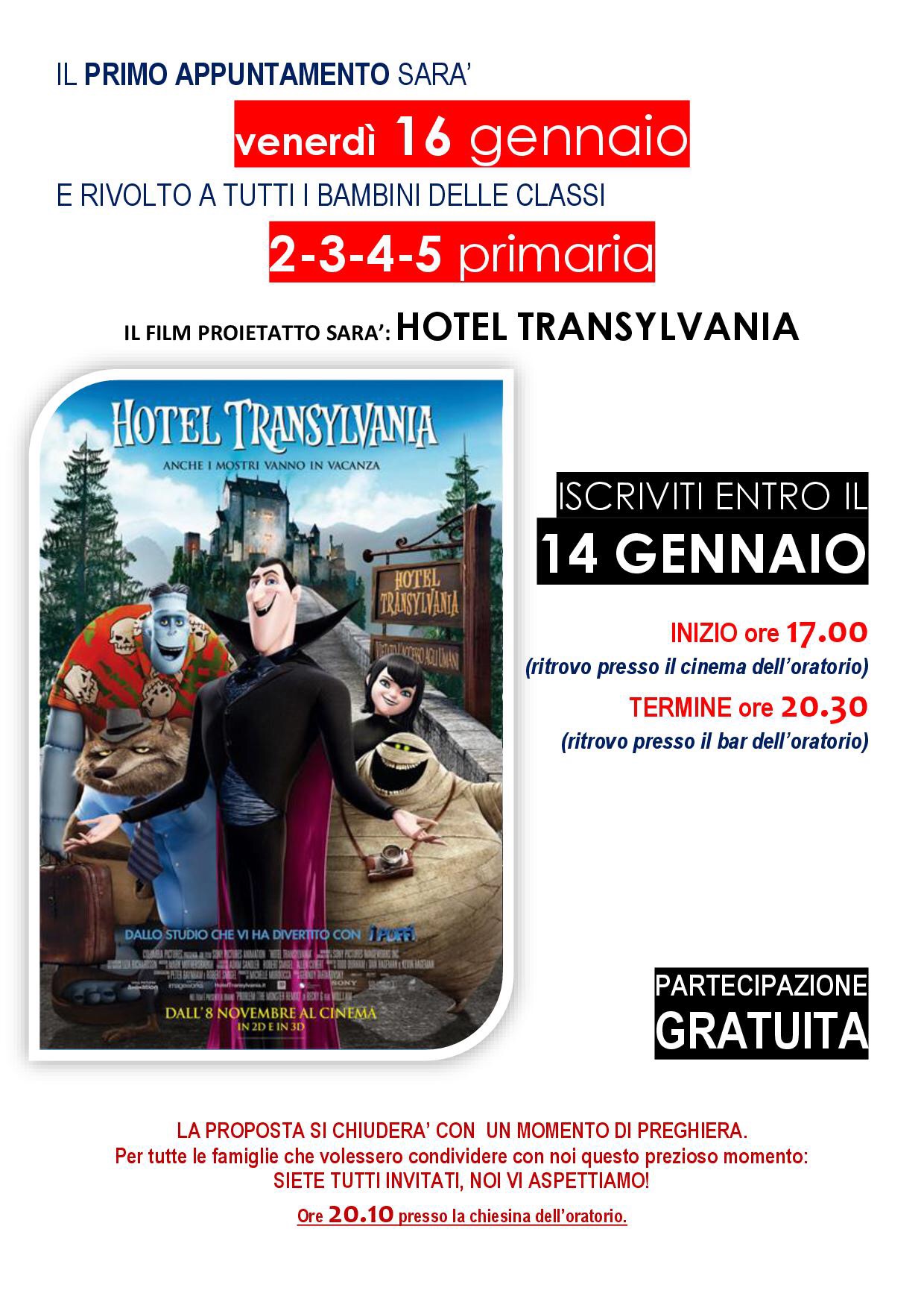 Mozzo/Oratorio: Hotel Transylvania gratis. admin14 gennaio 2015blog post Navigazione articoli PrecedenteContinua . Condividi:CondivisioneTweet Fai clic qui per stampare (Si apre in una nuova finestra) Stampa Fai clic per inviare un link a un amico via e-mail (Si apre in una nuova finestra) E-mail Mi piace Caricamento... Correlati