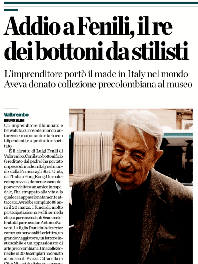 Mozzo/Valbrembo: ” Addio a Fenili, il re dei bottoni da stilisti” oggi su L’Eco di Bergamo in edicola | Valbrembo News admin4 marzo 2015blog post Navigazione articoli PrecedenteContinua Valbrembo: ” Addio a Fenili, il re dei bottoni da stilisti” oggi su L’Eco di Bergamo in edicola | Valbrembo News. Condividi:CondivisioneTweet Fai clic qui per stampare (Si apre in una nuova finestra) Stampa Fai clic per inviare un link a un amico via e-mail (Si apre in una nuova finestra) E-mail Mi piace Caricamento... Correlati