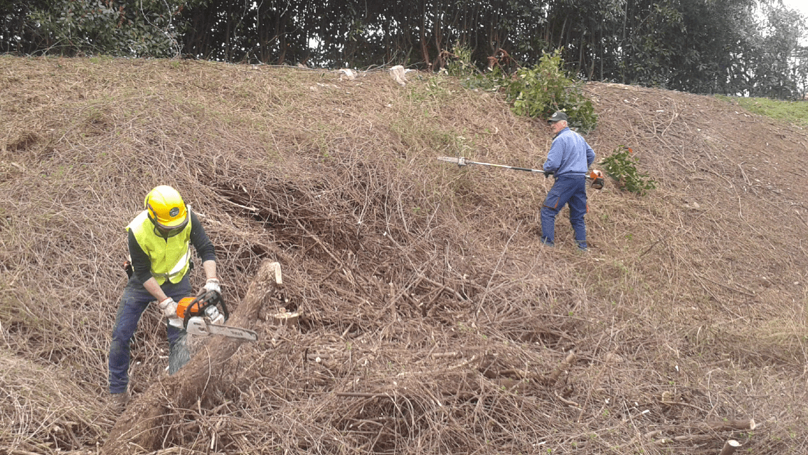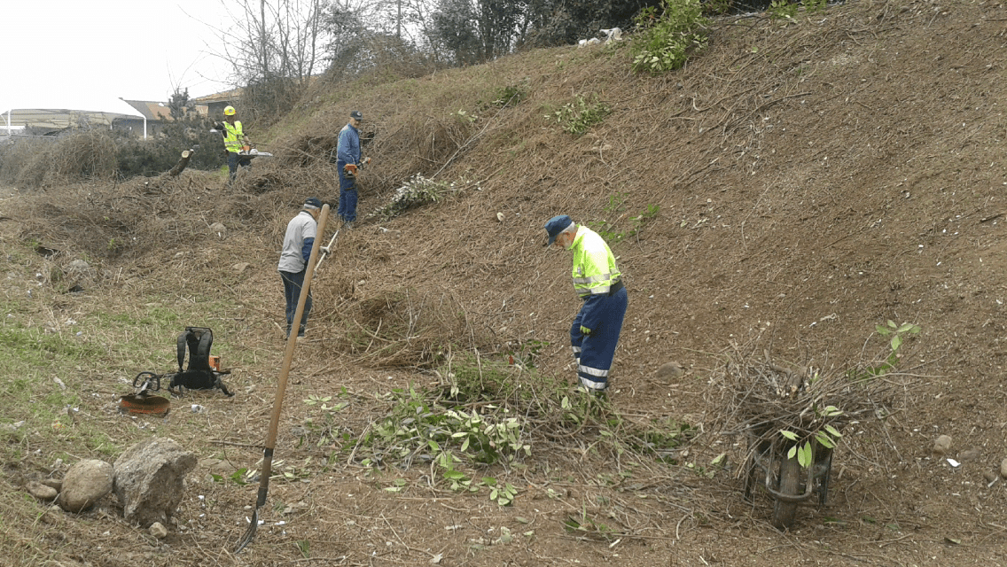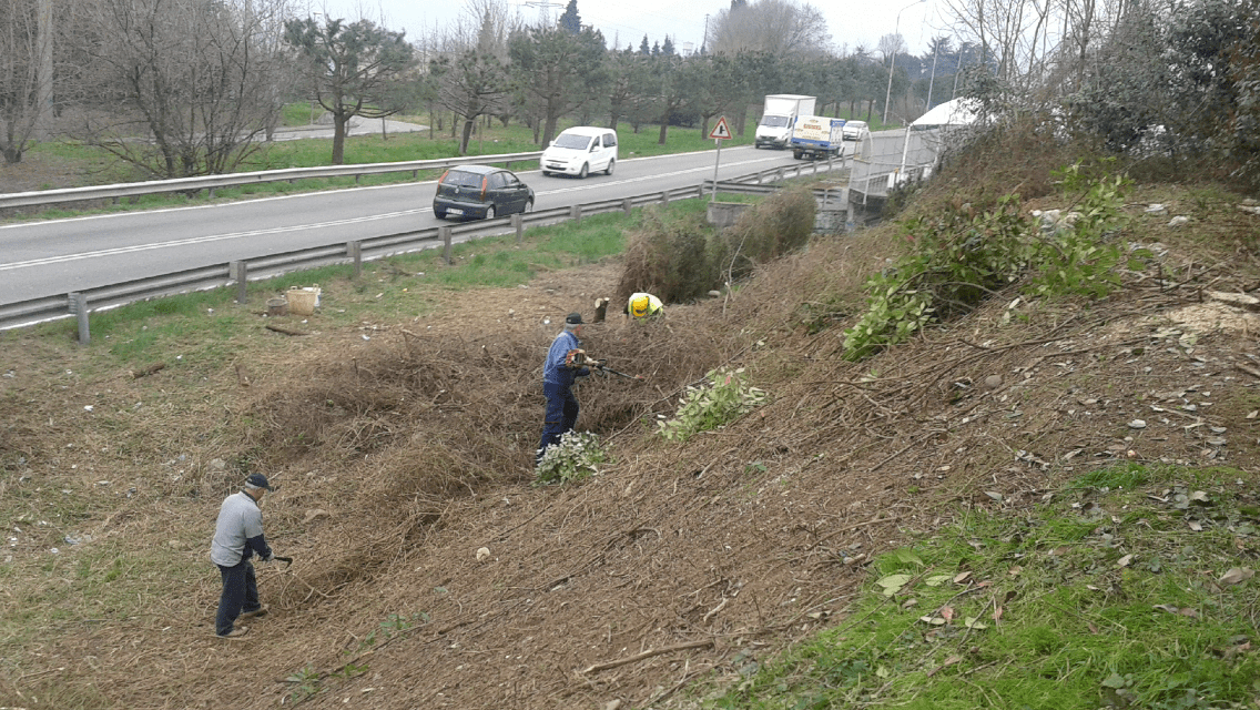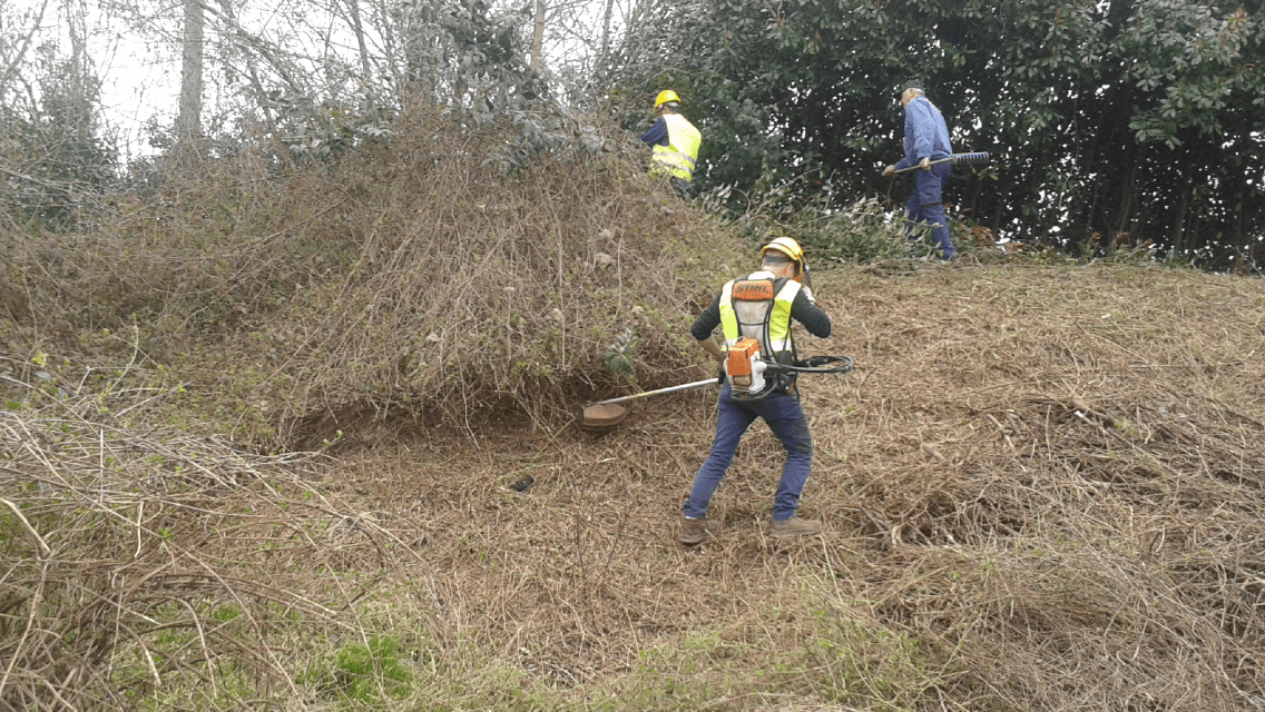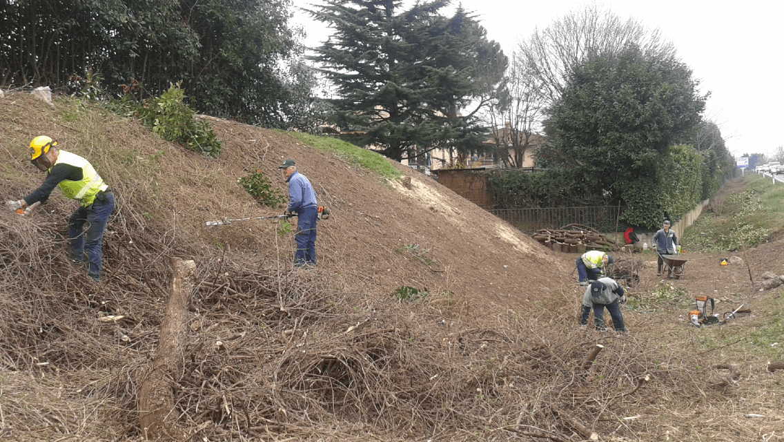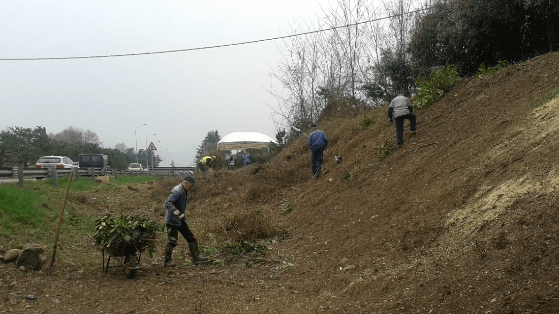 ” Il Gruppo Alpini Mozzo ha iniziato la bonifica della scarpata dietro le case comunali in via Degli Alpini confinante la strada provinciale Villa D’Almè Dalmine”