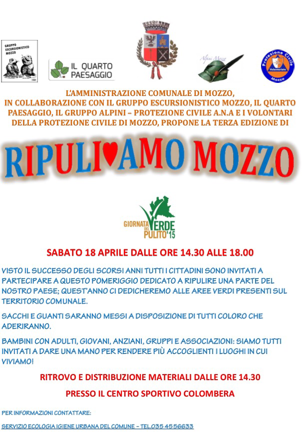 Mozzo: Ripuliamo Mozzo il 18 aprile admin14 aprile 2015blog post Navigazione articoli PrecedenteContinua Condividi:CondivisioneTweet Fai clic qui per stampare (Si apre in una nuova finestra) Stampa Fai clic per inviare un link a un amico via e-mail (Si apre in una nuova finestra) E-mail Mi piace Caricamento... Correlati