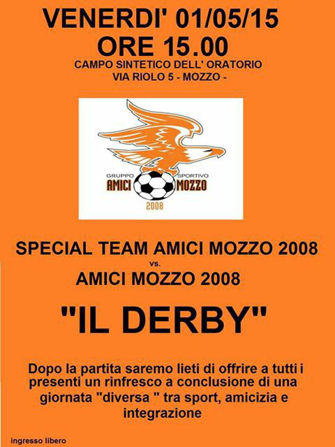 Mozzo/Calcio 1 maggio, il Derby! « AMICI MOZZO 2008 Football Club admin30 aprile 201530 aprile 2015blog post Navigazione articoli PrecedenteContinua 1 maggio, il Derby! « AMICI MOZZO 2008 Football Club. Condividi:CondivisioneTweet Fai clic qui per stampare (Si apre in una nuova finestra) Stampa Fai clic per inviare un link a un amico via e-mail (Si apre in una nuova finestra) E-mail Mi piace Caricamento... Correlati