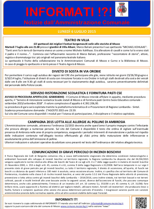 Mozzo/Comune: INFORMATI del 7 luglio 2015 admin8 luglio 2015blog post Navigazione articoli PrecedenteContinua Condividi:CondivisioneTweet Fai clic qui per stampare (Si apre in una nuova finestra) Stampa Fai clic per inviare un link a un amico via e-mail (Si apre in una nuova finestra) E-mail Mi piace Caricamento... Correlati