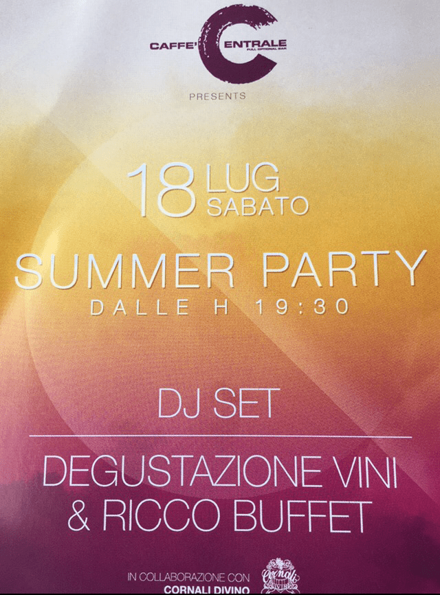 Mozzo/Summer Party Caffe Centrale Mozzo – Sabato 18 luglio 2015 admin15 luglio 201515 luglio 2015blog post Navigazione articoli PrecedenteContinua “Summer Party Caffe Centrale Mozzo Un bel aperitivo/serata in compagnia degustando vino e cocktail! Ci aspetta musica è bella gente! Vi aspettiamo” Condividi:CondivisioneTweet Fai clic qui per stampare (Si apre in una nuova finestra) Stampa Fai clic per inviare un link a un amico via e-mail (Si apre in una nuova finestra) E-mail Mi piace Caricamento... Correlati