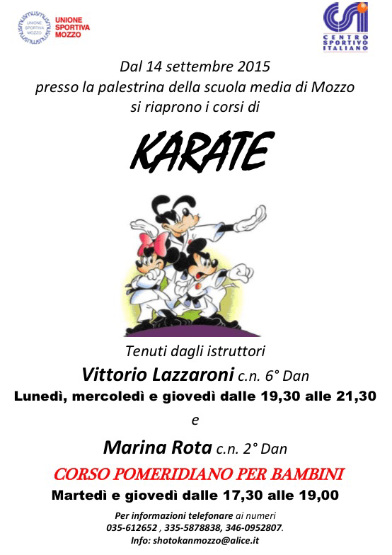 Mozzo/Karate: iniziano i corsi dal 14 settembre admin13 settembre 2015blog post Navigazione articoli PrecedenteContinua Condividi:CondivisioneTweet Fai clic qui per stampare (Si apre in una nuova finestra) Stampa Fai clic per inviare un link a un amico via e-mail (Si apre in una nuova finestra) E-mail Mi piace Caricamento... Correlati