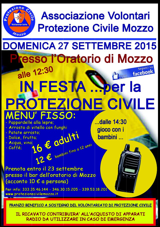Mozzo/ProtezioneCivile: festa il 27 settembre admin22 settembre 2015blog post Navigazione articoli PrecedenteContinua Condividi:CondivisioneTweet Fai clic qui per stampare (Si apre in una nuova finestra) Stampa Fai clic per inviare un link a un amico via e-mail (Si apre in una nuova finestra) E-mail Mi piace Caricamento... Correlati