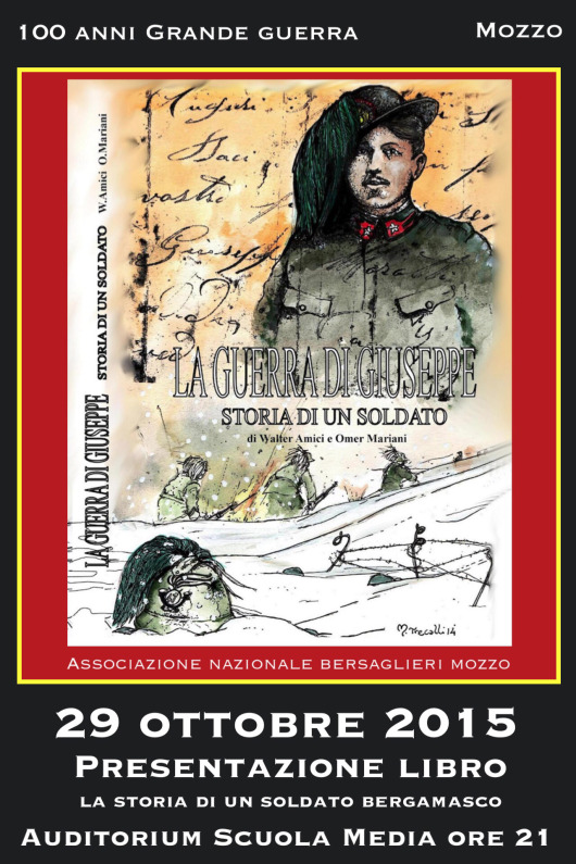 Mozzo 100 anni Grande Guerra: il 29 ottobre presentazione del libro ” la Guerra di Giuseppe” Storia di un soldato Bergamasco. | blog del Bersagliere Mozzo admin28 ottobre 201527 ottobre 2015blog post Navigazione articoli PrecedenteContinua Sorgente: Grande Guerra: il 29 ottobre presentazione del libro ” la Guerra di Giuseppe” Storia di un soldato Bergamasco. | blog del Bersagliere Condividi:CondivisioneTweet Fai clic qui per stampare (Si apre in una nuova finestra) Stampa Fai clic per inviare un link a un amico via e-mail (Si apre in una nuova finestra) E-mail Mi piace Caricamento... Correlati