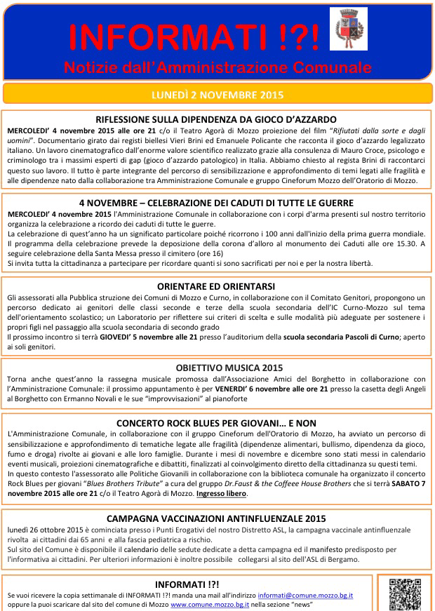 Mozzo/Comune: INFORMATI del 2 novembre 2015 admin3 novembre 2015blog post Navigazione articoli PrecedenteContinua Condividi:CondivisioneTweet Fai clic qui per stampare (Si apre in una nuova finestra) Stampa Fai clic per inviare un link a un amico via e-mail (Si apre in una nuova finestra) E-mail Mi piace Caricamento... Correlati