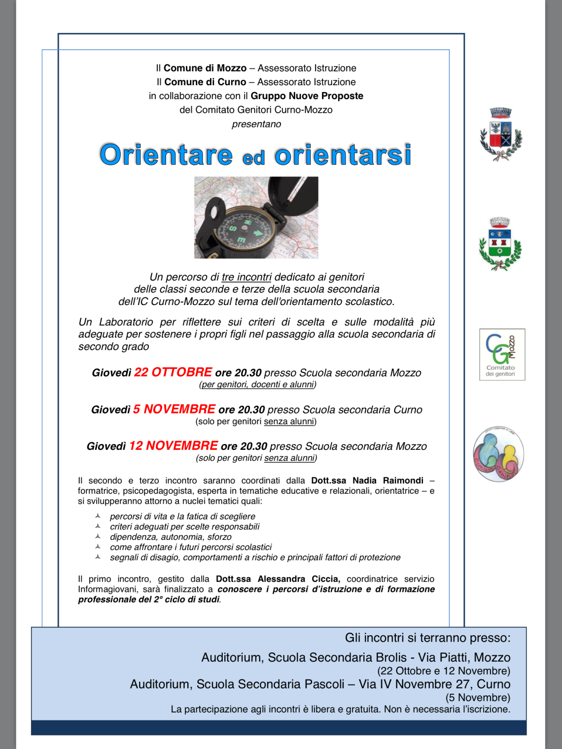 Mozzo/Scuola: Orientare Orientarsi un percorso per i genitori admin3 novembre 201527 ottobre 2015blog post Navigazione articoli PrecedenteContinua Mozzo/Scuola: Orientare Orientarsi un percorso per i genitori Condividi:CondivisioneTweet Fai clic qui per stampare (Si apre in una nuova finestra) Stampa Fai clic per inviare un link a un amico via e-mail (Si apre in una nuova finestra) E-mail Mi piace Caricamento... Correlati