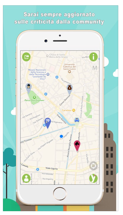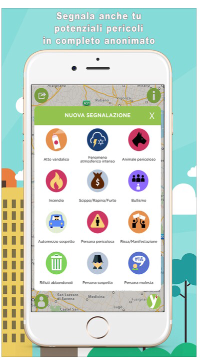 Atto vandalico in corso: gesti in corso di svolgimento che possono ledere al privato o alla comunità come scritte su muri, monumenti o spazi comuni, deterioramento di spazi pubblici/privati e danneggiamenti a cose in generale. Già avvenuto: atto vandalico già avvenuto, da segnalare per sensibilizzare la comunità sulla problematica.