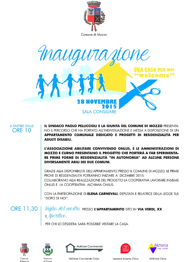Mozzo/Abilitare Convivendo: “Una casa per noi” il 28 novembre inaugurazione admin23 novembre 201523 novembre 2015blog post Navigazione articoli PrecedenteContinua Condividi:CondivisioneTweet Stampa (Si apre in una nuova finestra) Stampa Invia un link a un amico via e-mail (Si apre in una nuova finestra) E-mail Mi piace Caricamento... Correlati