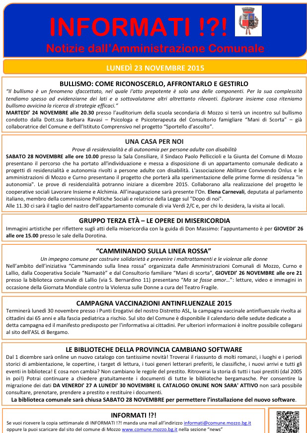 Mozzo/Comune: INFORMATI del 23 novembre admin24 novembre 201524 novembre 2015blog post Navigazione articoli PrecedenteContinua Condividi:CondivisioneTweet Fai clic qui per stampare (Si apre in una nuova finestra) Stampa Fai clic per inviare un link a un amico via e-mail (Si apre in una nuova finestra) E-mail Mi piace Caricamento... Correlati