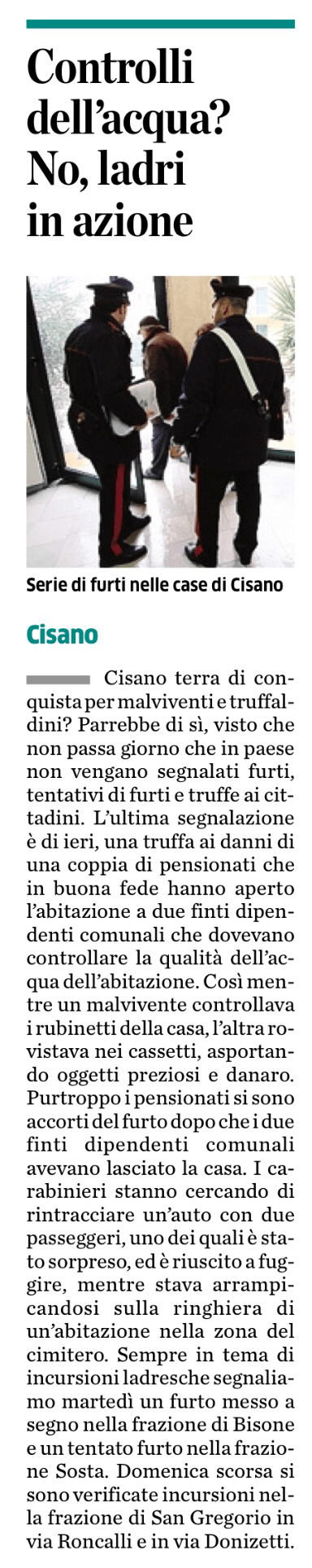 Sorgente: Isola “Controlli dell’acqua? No, ladri in azione. Oggi su L’Eco di Bergamo in edicola | Isola e dintorni