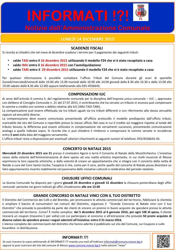 Mozzo/Comune: Informati del 14 dicembre admin15 dicembre 2015blog post Navigazione articoli PrecedenteContinua Condividi:CondivisioneTweet Fai clic qui per stampare (Si apre in una nuova finestra) Stampa Fai clic per inviare un link a un amico via e-mail (Si apre in una nuova finestra) E-mail Mi piace Caricamento... Correlati