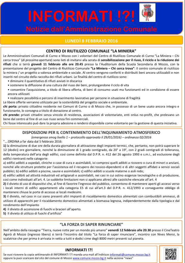 Mozzo/Comune: INFORMATI del 8 febbraio 2016 admin9 febbraio 2016blog post Navigazione articoli PrecedenteContinua Condividi:CondivisioneTweet Stampa (Si apre in una nuova finestra) Stampa Invia un link a un amico via e-mail (Si apre in una nuova finestra) E-mail Mi piace Caricamento... Correlati
