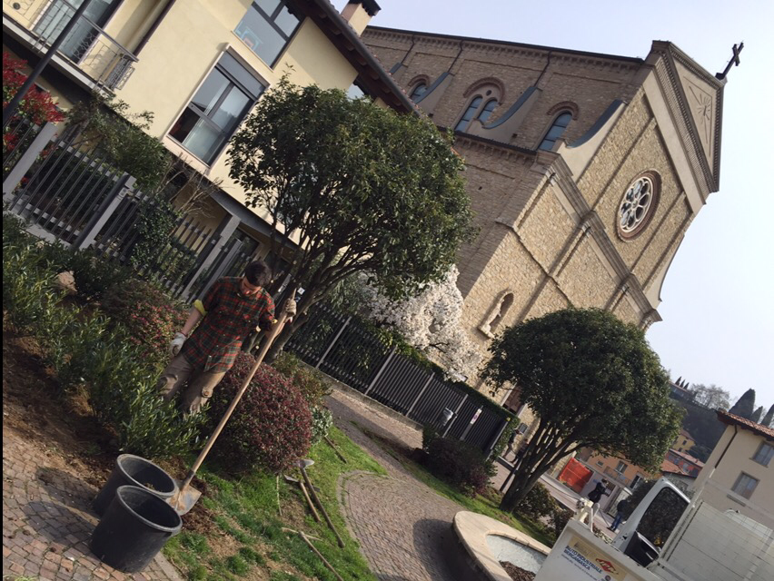 In piazza sostituiscono la siepe colpita, come per tutte le siepi simili in paese , dalla “piralide del bosso”
