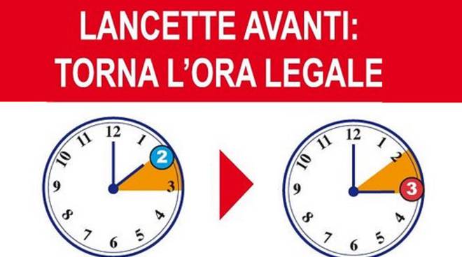 Torna l’ora legale: lancette spostate in avanti di un’ora nella notte tra sabato 26 e domenica 27 marzo.