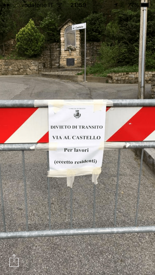 Mozzo/Via al Castello: chiusa al traffico lunedì e martedì admin4 aprile 20163 aprile 2016blog post Navigazione articoli PrecedenteContinua Sorgente: Mozzo/Via Al Castello Chiusura per lavori |Comune di Mozzo | Mozzo News Condividi:CondivisioneTweet Fai clic qui per stampare (Si apre in una nuova finestra) Stampa Fai clic per inviare un link a un amico via e-mail (Si apre in una nuova finestra) E-mail Mi piace Caricamento... Correlati