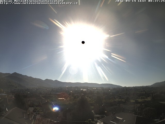 “Un effetto curioso segnalato da un cittadino: la web cam meteo di Almenno San Salvatore che inquadra il profilo dei colli di Mozzo evidenzia un effetto (ottico) che da l’impressione che il sole esploda sopra i colli…”