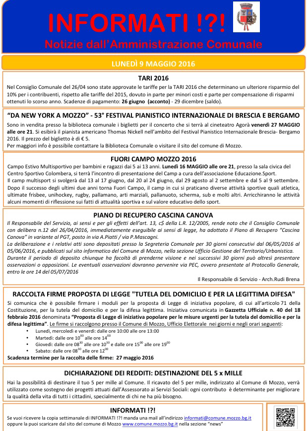 Mozzo/Comune: INFORMATI del 9 maggio 2016 admin10 Maggio 2016blog post Navigazione articoli PrecedenteContinua Condividi:CondivisioneTweet Fai clic qui per stampare (Si apre in una nuova finestra) Stampa Fai clic per inviare un link a un amico via e-mail (Si apre in una nuova finestra) E-mail Mi piace Caricamento... Correlati