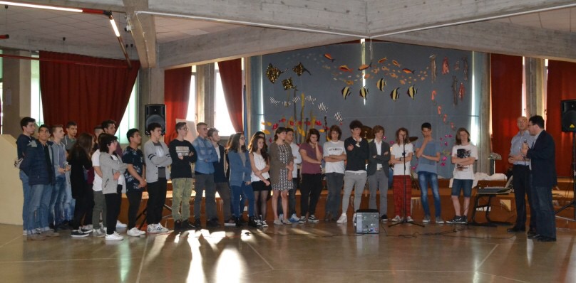 Bersaglieri, Fanti, Marinai e Alpini presenti alla cerimonia della consegna della Costituzione ai neo-maggiorenni di Mozzo. (Foto Luigi Rota)