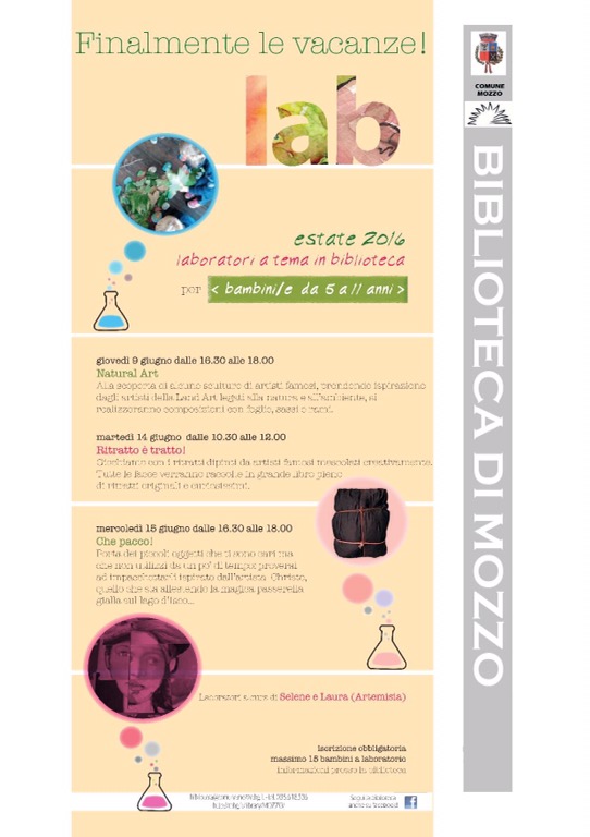 Mozzo/Biblioteca: Finalmente vacanze! “Lab” dal 9 giugno admin3 giugno 201630 Maggio 2016blog post Navigazione articoli PrecedenteContinua Condividi:CondivisioneTweet Fai clic qui per stampare (Si apre in una nuova finestra) Stampa Fai clic per inviare un link a un amico via e-mail (Si apre in una nuova finestra) E-mail Mi piace Caricamento... Correlati