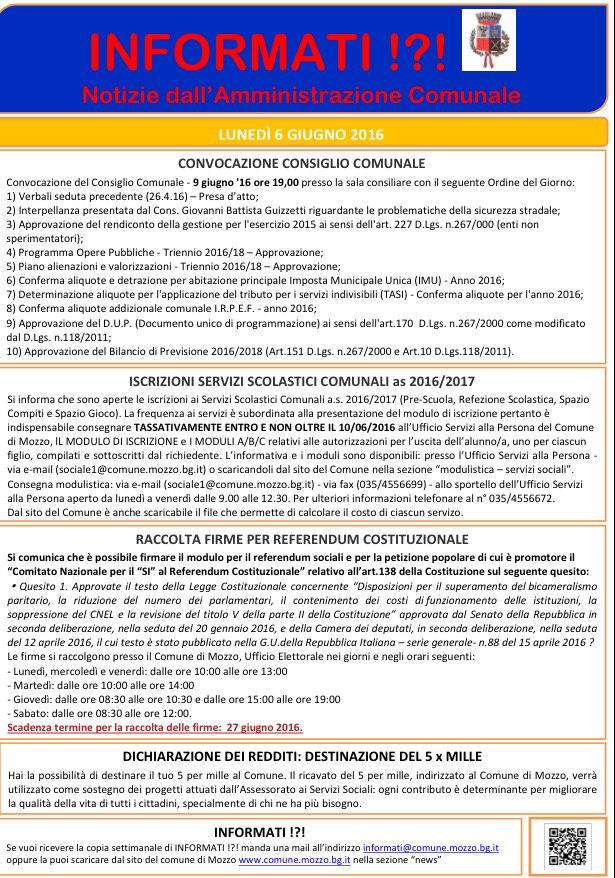 Mozzo/Comune: INFORMATI del 6 giugno admin7 giugno 2016blog post Navigazione articoli PrecedenteContinua Condividi:CondivisioneTweet Fai clic qui per stampare (Si apre in una nuova finestra) Stampa Fai clic per inviare un link a un amico via e-mail (Si apre in una nuova finestra) E-mail Mi piace Caricamento... Correlati