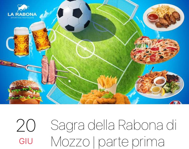 Mozzo: “sagra della Rabona dal 20 giugno” admin20 giugno 201621 giugno 2016blog post Navigazione articoli PrecedenteContinua — Condividi:CondivisioneTweet Fai clic qui per stampare (Si apre in una nuova finestra) Stampa Fai clic per inviare un link a un amico via e-mail (Si apre in una nuova finestra) E-mail Mi piace Caricamento... Correlati