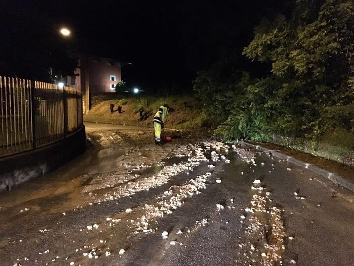 Le località maggiormente colpite sono state Via Todeschini alta, Via Leonardo da Vinci, il sottopasso per accedere al Centro Commerciale dei Colli e Via Borghetto, dove con cartelli segnaletici, abbiamo messo in sicurezza la strada, in attesa dell’intervento della ruspa di oggi.