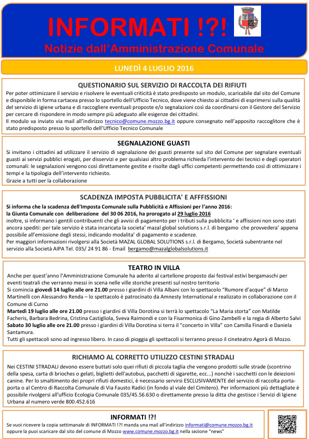 Mozzo/Comune: Informati del 4 luglio admin5 luglio 2016blog post Navigazione articoli PrecedenteContinua Condividi:CondivisioneTweet Fai clic qui per stampare (Si apre in una nuova finestra) Stampa Fai clic per inviare un link a un amico via e-mail (Si apre in una nuova finestra) E-mail Mi piace Caricamento... Correlati