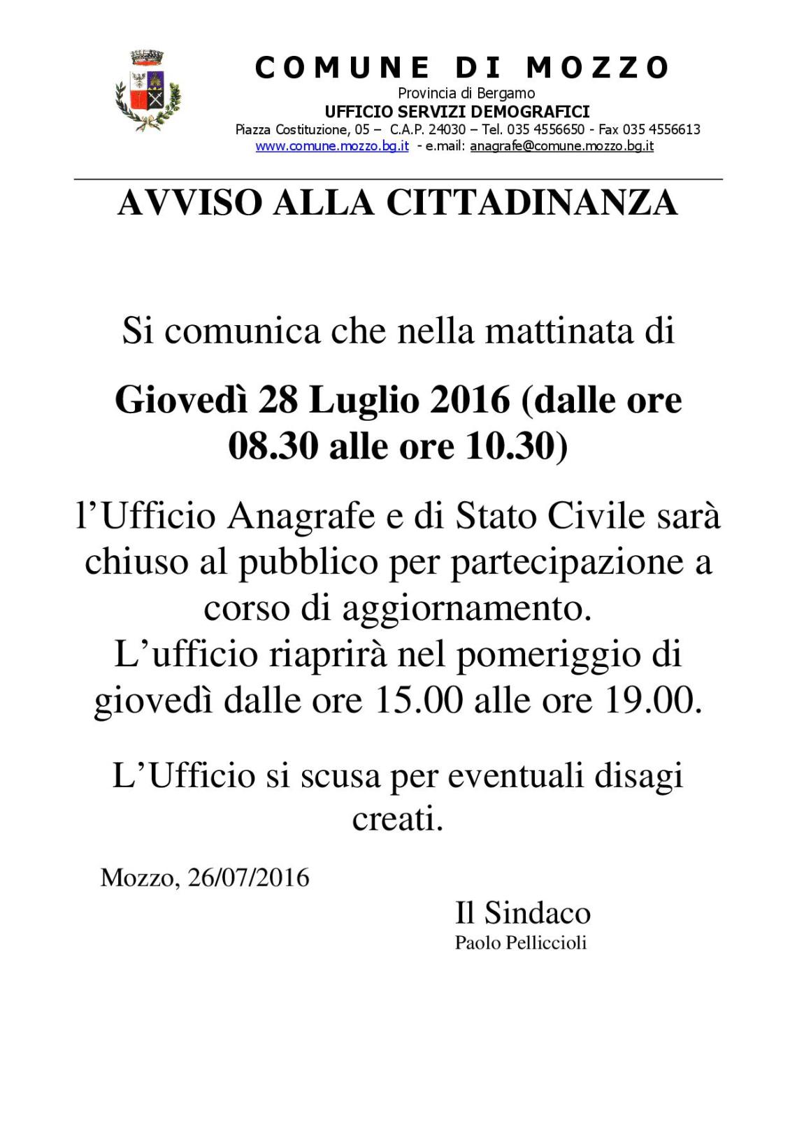 Mozzo/Anagrafe: Giovedi 28 luglio chiuso per aggiornamento|Comune di Mozzo admin27 luglio 201627 luglio 2016blog post Navigazione articoli PrecedenteContinua Sorgente: Comune di Mozzo Condividi:CondivisioneTweet Fai clic qui per stampare (Si apre in una nuova finestra) Stampa Fai clic per inviare un link a un amico via e-mail (Si apre in una nuova finestra) E-mail Mi piace Caricamento... Correlati
