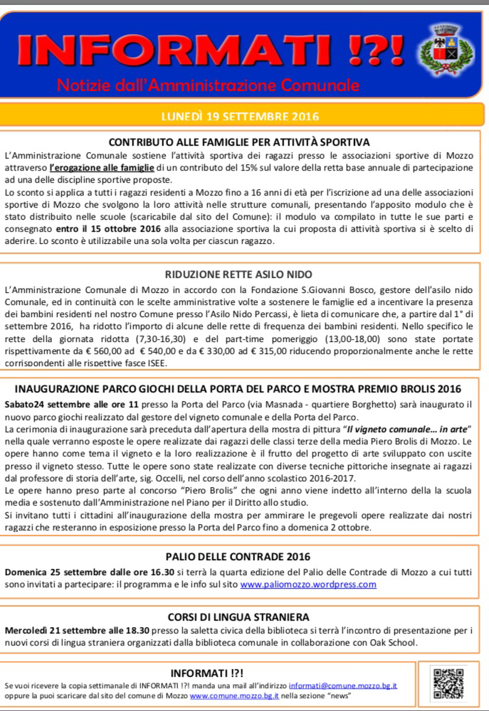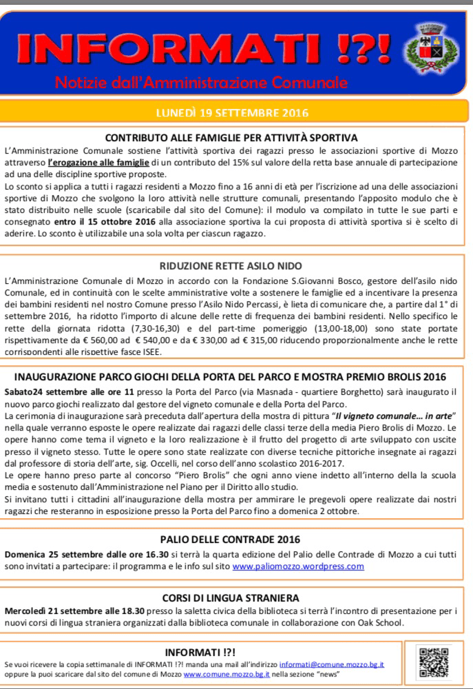 Mozzo/Comune: Informati del 19 settembre admin20 settembre 2016blog post Navigazione articoli PrecedenteContinua Condividi:CondivisioneTweet Fai clic qui per stampare (Si apre in una nuova finestra) Stampa Fai clic per inviare un link a un amico via e-mail (Si apre in una nuova finestra) E-mail Mi piace Caricamento... Correlati