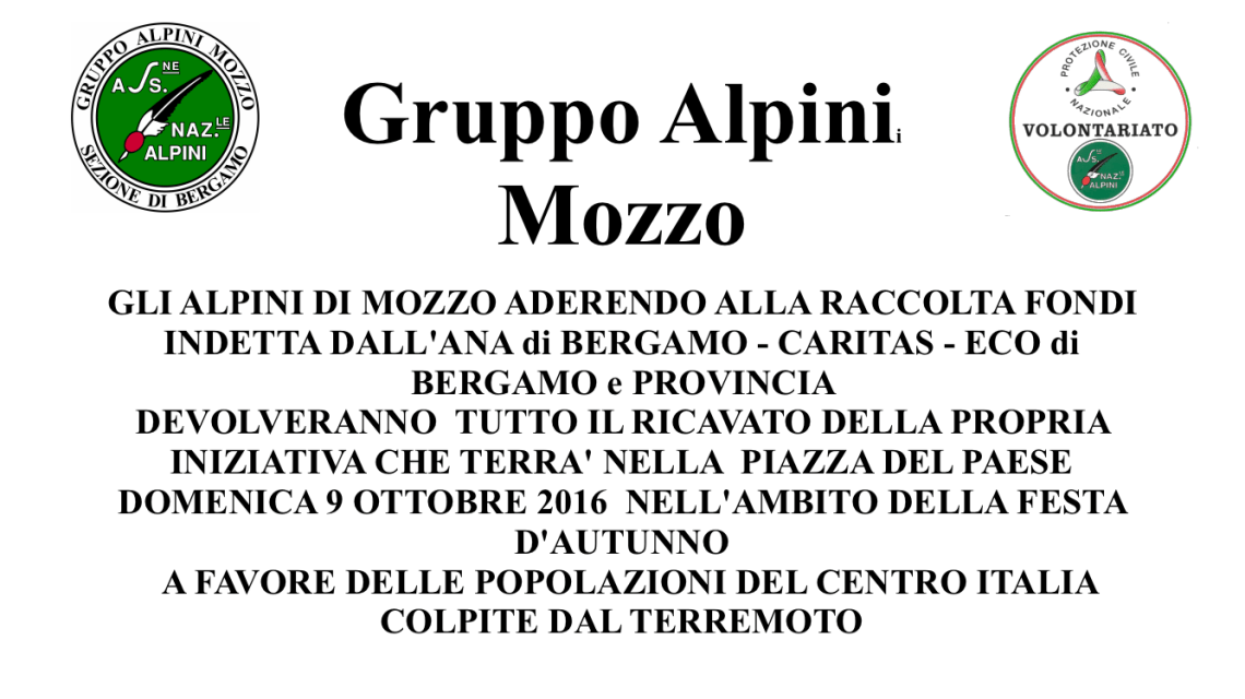 Mozzo/Solidarietà: gli Alpini per il Centro-Italia admin9 ottobre 2016blog post Navigazione articoli PrecedenteContinua Condividi:CondivisioneTweet Fai clic qui per stampare (Si apre in una nuova finestra) Stampa Fai clic per inviare un link a un amico via e-mail (Si apre in una nuova finestra) E-mail Mi piace Caricamento... Correlati