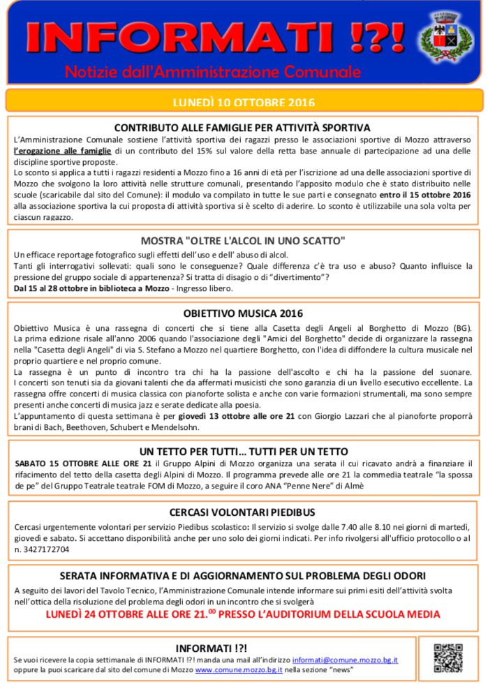 Mozzo/Comune: INFORMATI del 10 ottobre admin11 ottobre 2016blog post Navigazione articoli PrecedenteContinua Condividi:CondivisioneTweet Fai clic qui per stampare (Si apre in una nuova finestra) Stampa Fai clic per inviare un link a un amico via e-mail (Si apre in una nuova finestra) E-mail Mi piace Caricamento... Correlati