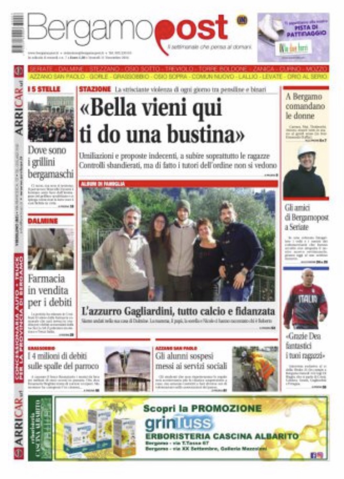 Altro giro, altra corsa. È uscito alle prime ore di venerdì 11 novembre il settimo numero del nostro settimanale. Come oramai avrete capito, lo potete trovare in tutte le edicole, supermercati e centri commerciali di Bergamo e dei 17 Comuni della provincia di cui ci occupiamo: Seriate, Dalmine, Stezzano, Osio Sotto, Treviolo, Torre Boldone, Zanica, Curno, Mozzo…Sorgente: Cosa c’è nel settimo BergamoPost che dall’11 novembre è in edicola – Bergamo Post