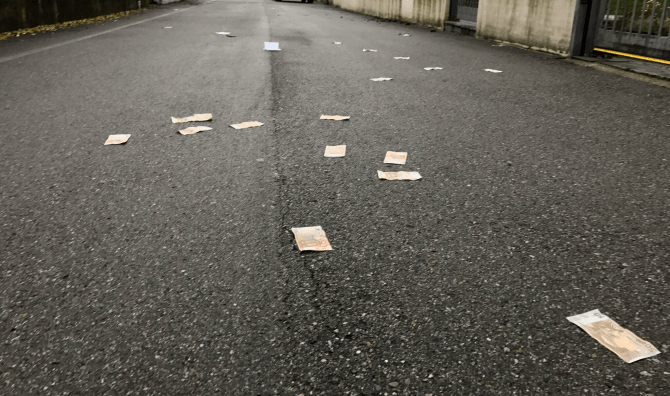La vicenda risale alla fine di novembre ed è stata riportata dal blog Mozzo News. Dopo un violento acquazzone, in una via periferica l’asfalto s’è ricoperto di cinquanta euro. Com’è possibile?