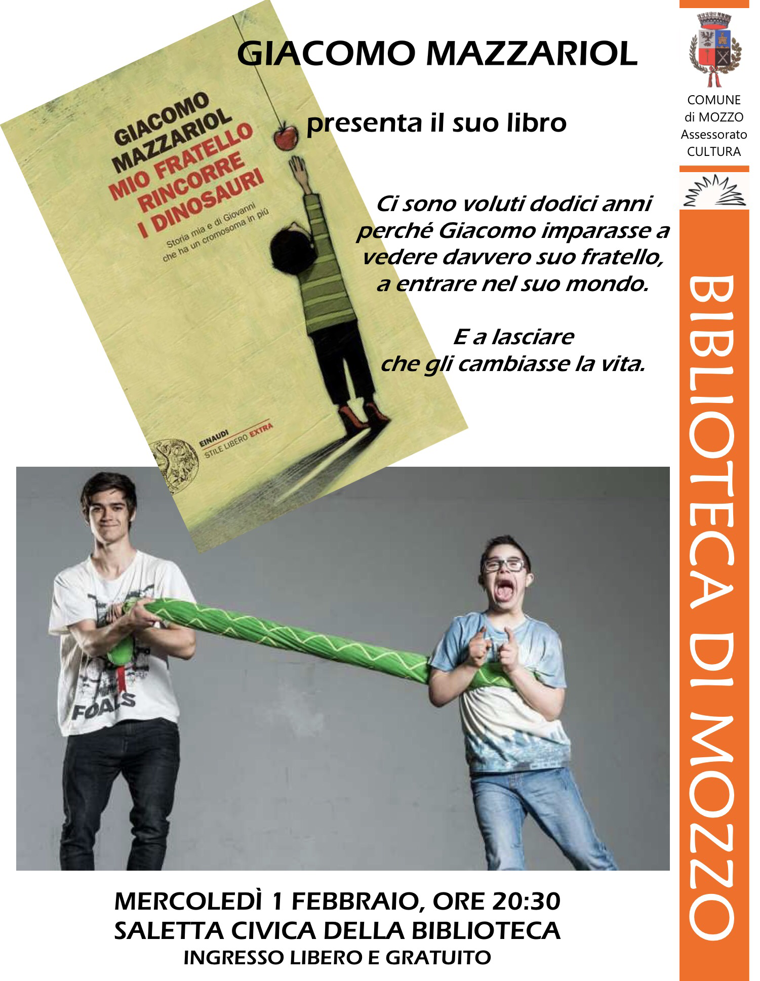 Mozzo/Biblioteca: “mio fratello rincorre i dinosauri” presentazione libro il 1 febbraio admin27 gennaio 2017blog post Navigazione articoli PrecedenteContinua Condividi:CondivisioneTweet Fai clic qui per stampare (Si apre in una nuova finestra) Stampa Fai clic per inviare un link a un amico via e-mail (Si apre in una nuova finestra) E-mail Mi piace Caricamento... Correlati