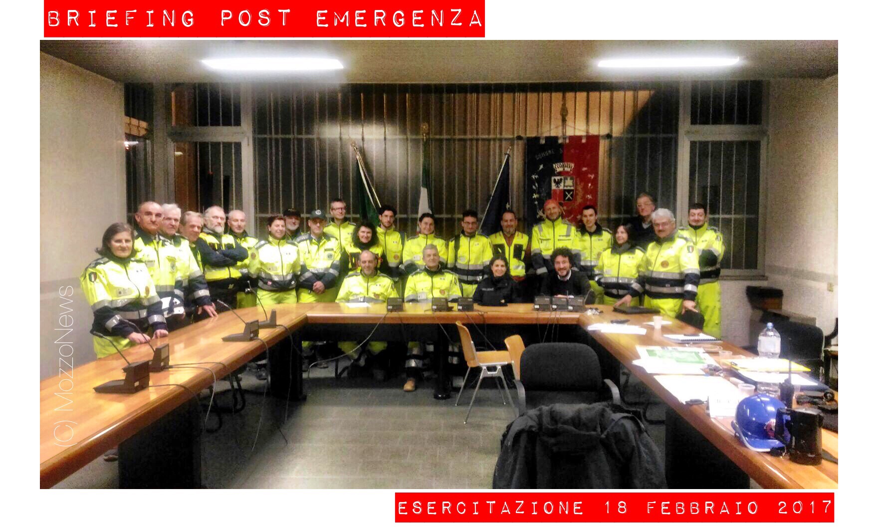 “L’esercitazione di protezione civile, svoltasi a Mozzo sabato 18 febbraio, è stata l’occasione per testare non solo le procedure di coordinamento degli enti, ma un’ulteriore verifica per i volontari sulla loro preparazione in situazioni di emergenza. Sono stati simulati interventi relativi a scenari di rischio idrogeologico, idraulico, temporali forti e vento forte.