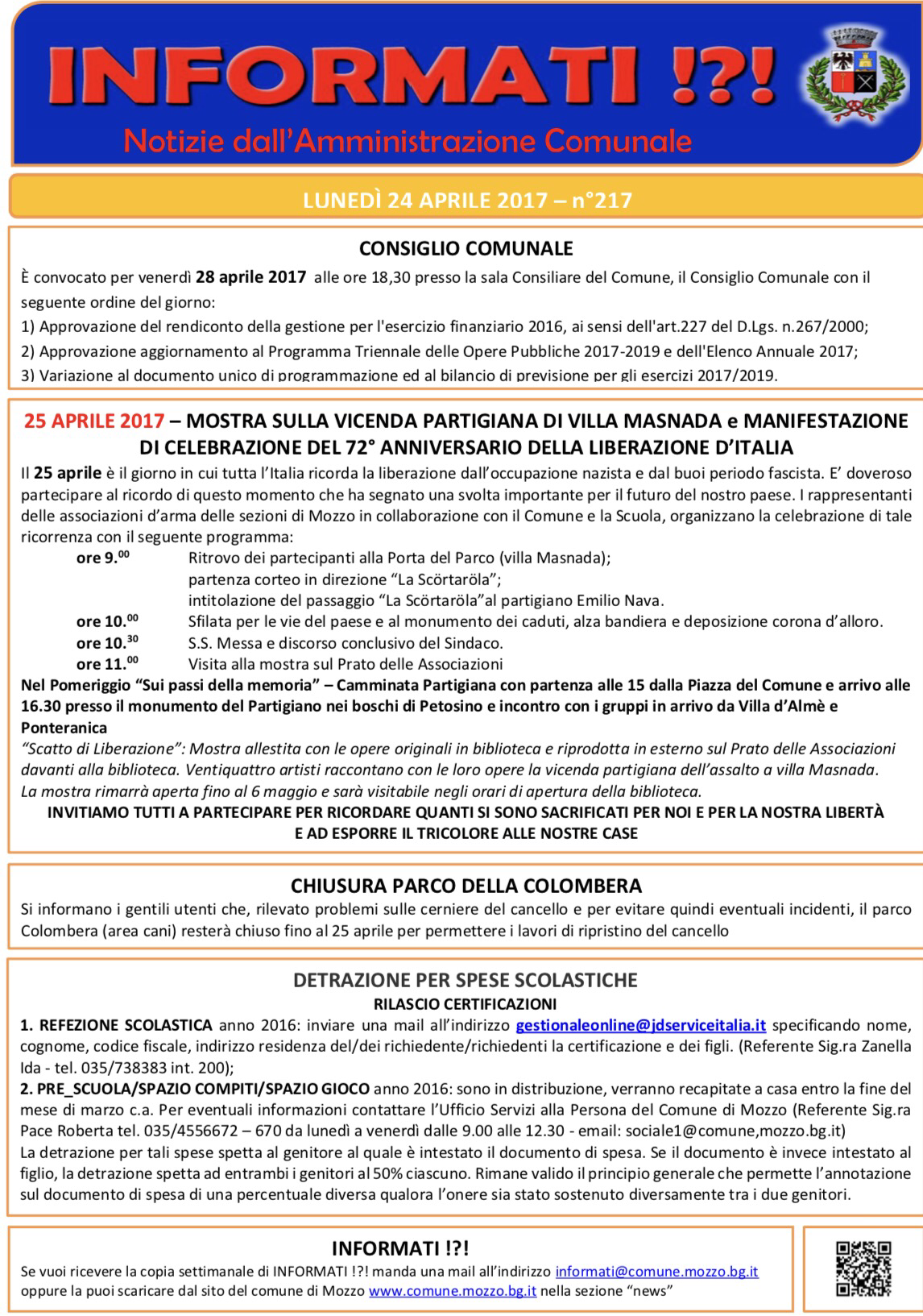 Mozzo/Comune: Informati del 24 aprile admin26 aprile 2017blog post Navigazione articoli PrecedenteContinua Condividi:CondivisioneTweet Fai clic qui per stampare (Si apre in una nuova finestra) Stampa Fai clic per inviare un link a un amico via e-mail (Si apre in una nuova finestra) E-mail Mi piace Caricamento... Correlati