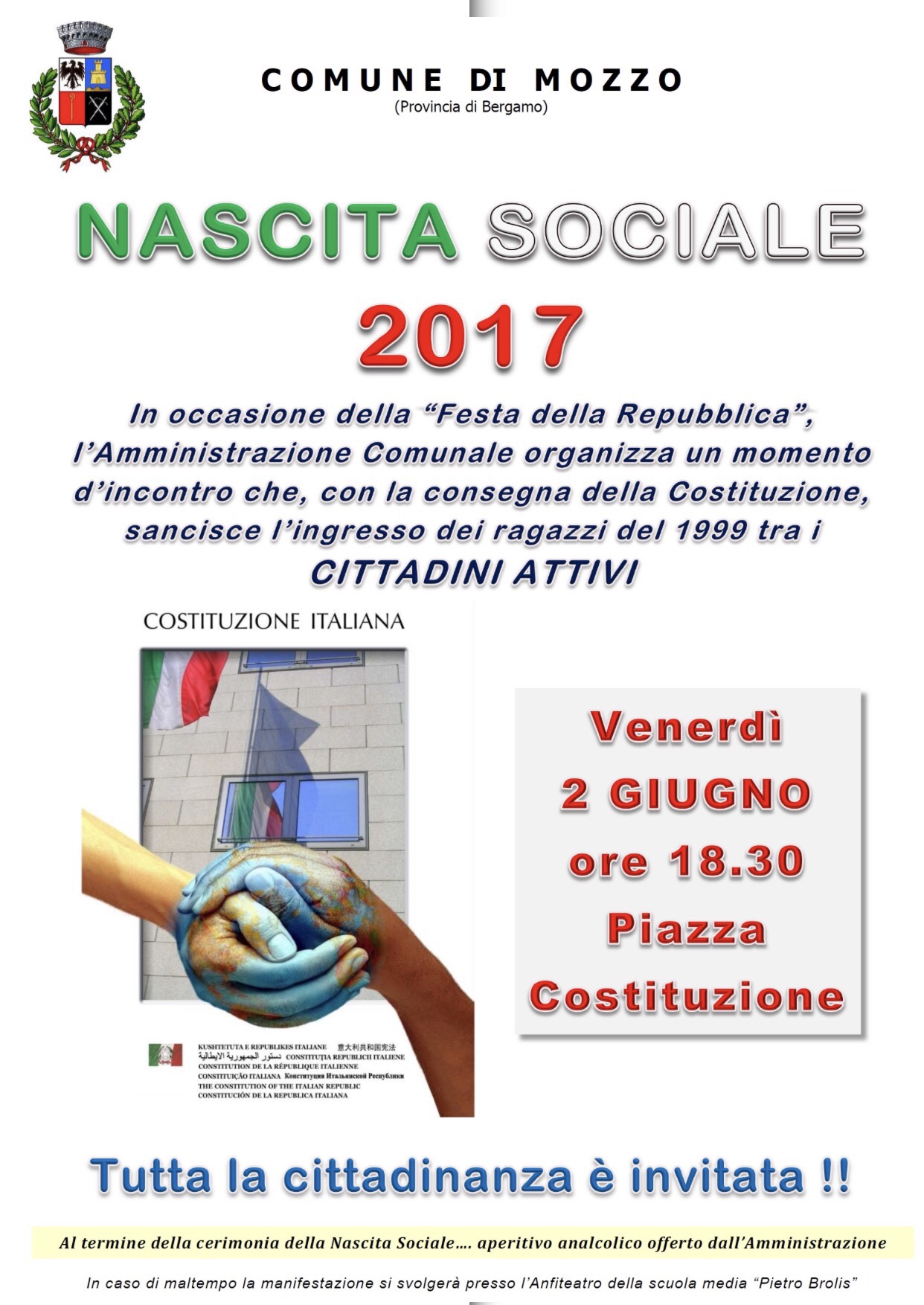 Mozzo/2 giugno: Nascita Sociale 2017 admin1 giugno 201729 Maggio 2017blog post Navigazione articoli PrecedenteContinua Condividi:CondivisioneTweet Fai clic qui per stampare (Si apre in una nuova finestra) Stampa Fai clic per inviare un link a un amico via e-mail (Si apre in una nuova finestra) E-mail Mi piace Caricamento... Correlati